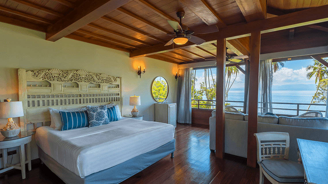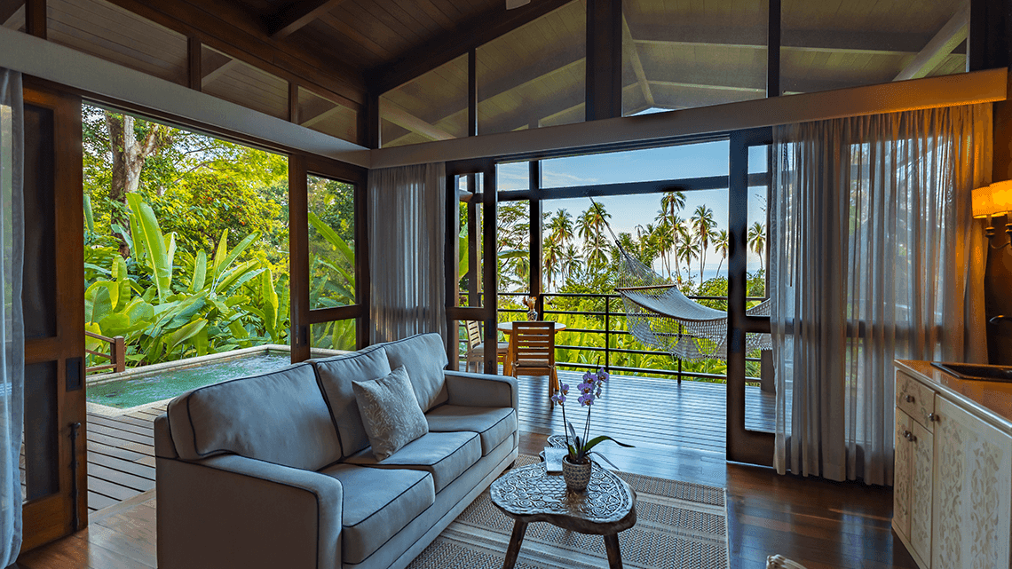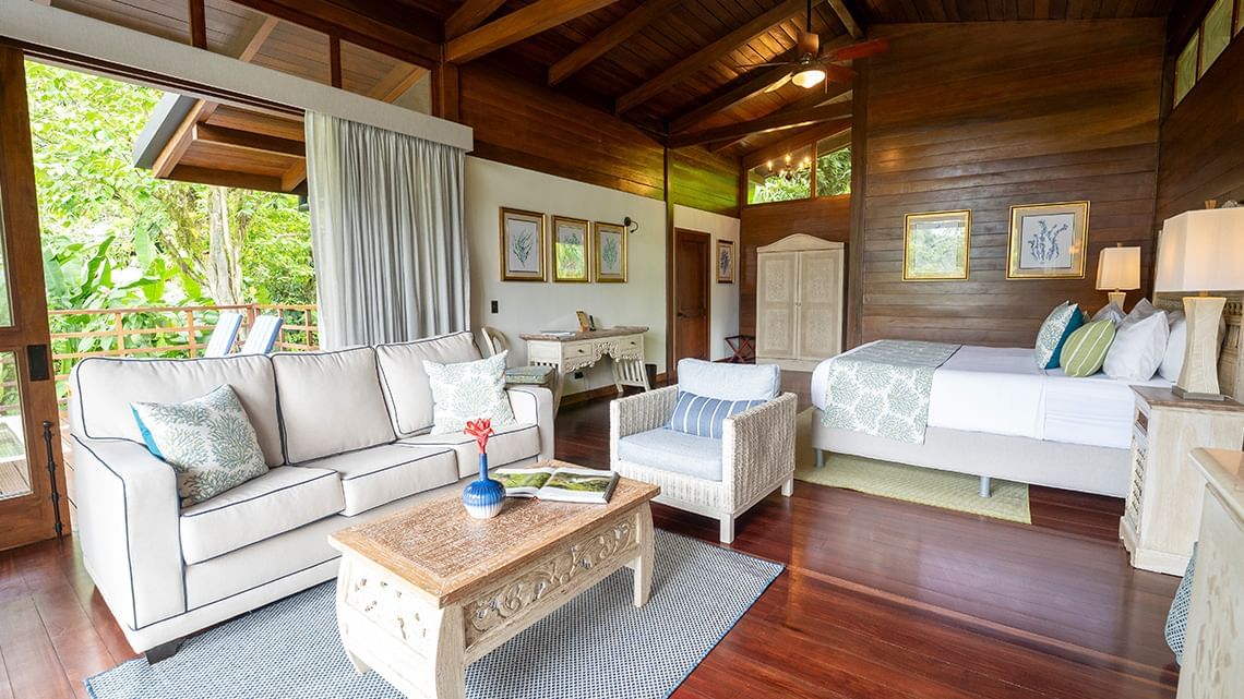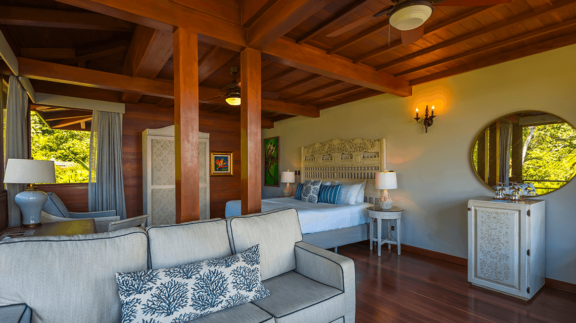 Experience the epitome of luxury and comfort with our exquisite Luxury Casitas featuring a private al fresco terrace and invigorating plunge pool. Indulge in the breathtaking views and unwind in the spacious lounging areas, while enjoying the complimentary minibar stocked daily with refreshing juices, fresh fruits, and delectable pastries. Immerse yourself in the awe-inspiring 180° vistas of tropical landscapes, captivating wildlife, and tranquil shores from the sanctuary of your personal terrace. With a king bed and sofa bed, these rooms are designed to accommodate up to three guests.