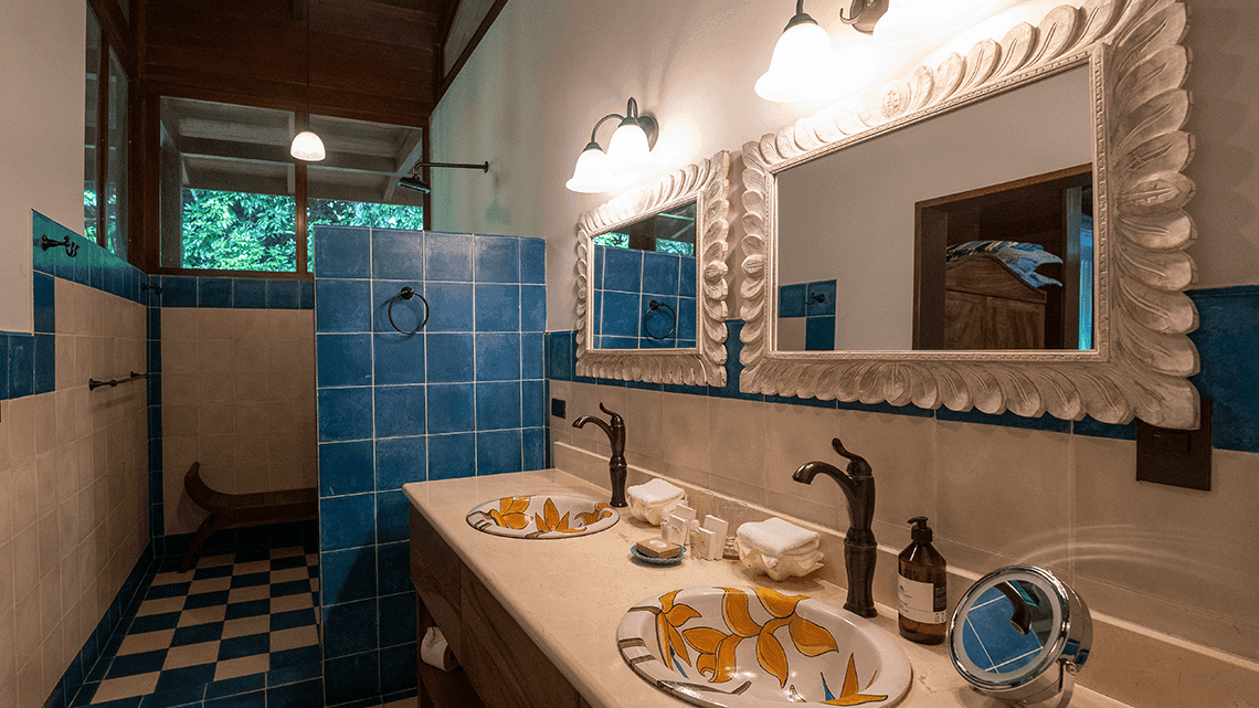 The Deluxe Ocean View Guestrooms offer a luxurious sanctuary where guests can immerse themselves in the untamed beauty of the surroundings, all while enjoying the utmost comfort and tropical elegance. The use of sustainable hardwoods, hand-crafted tiles, and vibrant colors creates a truly unique aesthetic that transports guests to a distant realm of rugged allure. Each unit boasts a king bed and a stunning sink bathroom vanity. Step onto the private terrace and be enchanted by the sweeping 180° views of the lush tropical gardens and the soothing rhythm of the tranquil tides.