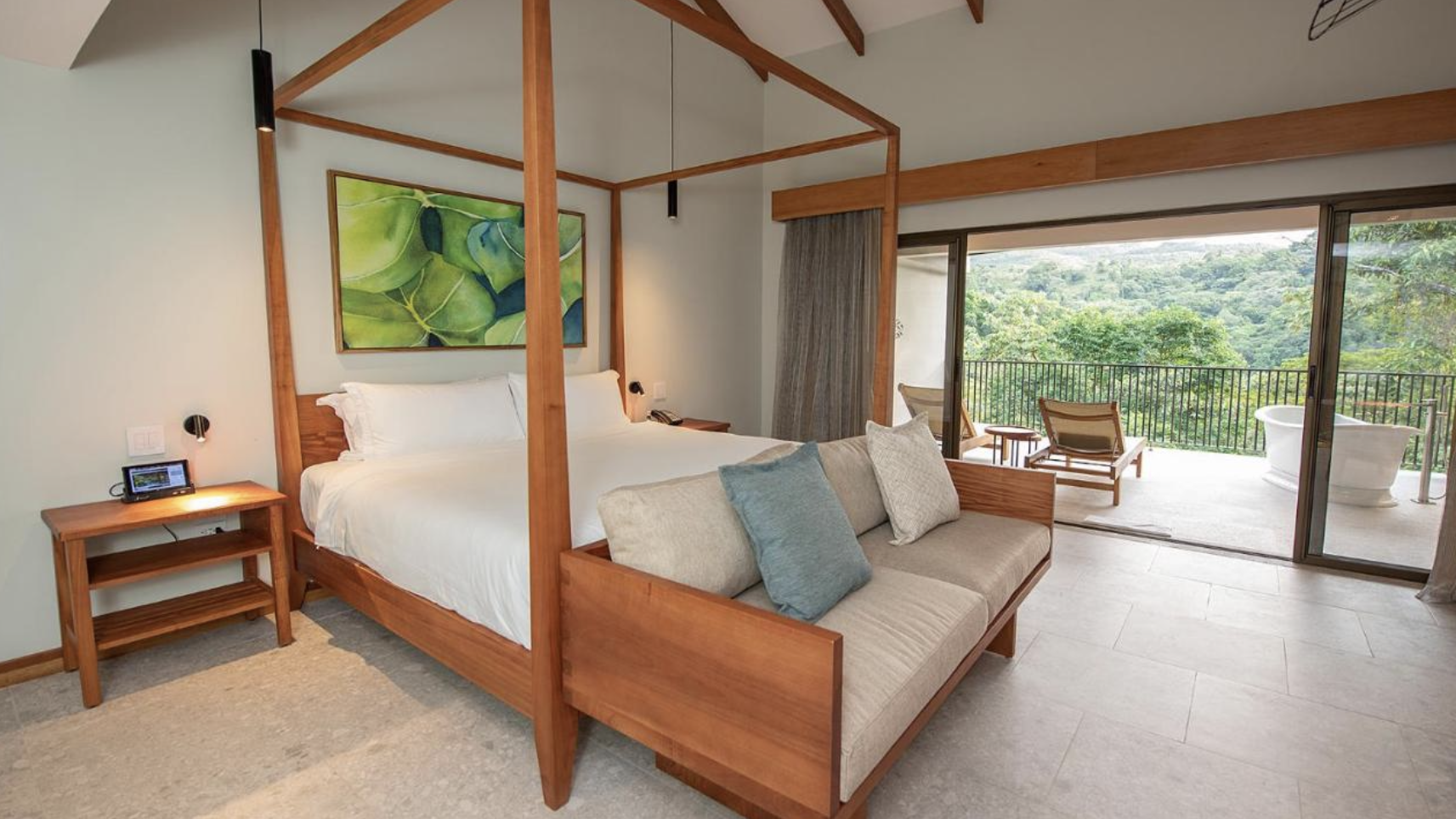 Ideal for romance, our honeymoon suite is the best choice for those celebrating a honeymoon, anniversary or a special occasion with your loved one. The natural beauty of the exotic rainforest forest will be the perfect complement for a scene full of magic and passion. Our honeymoon suite features a king-size bed, a bathtub and a dual rainshower for a memorable experience. The balcony is perfect for those who prefer private relaxation. Includes: 50” Smart TV in the bedroom, coffee and tea selection, free Wi-Fi.