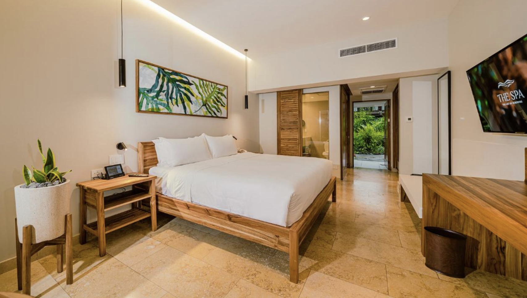 Experience a vast open space with unobstructed views of the exterior tropical setting, magnificently complemented by a modern interior with a colorful décor. A cozy living area invokes relaxation. These rooms are available with one king bed or with two queen beds. Connecting rooms are available upon request.